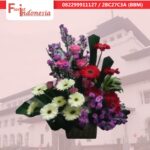 Bunga mawar pink, krisan putih, kuning, dan bunga sedap malam