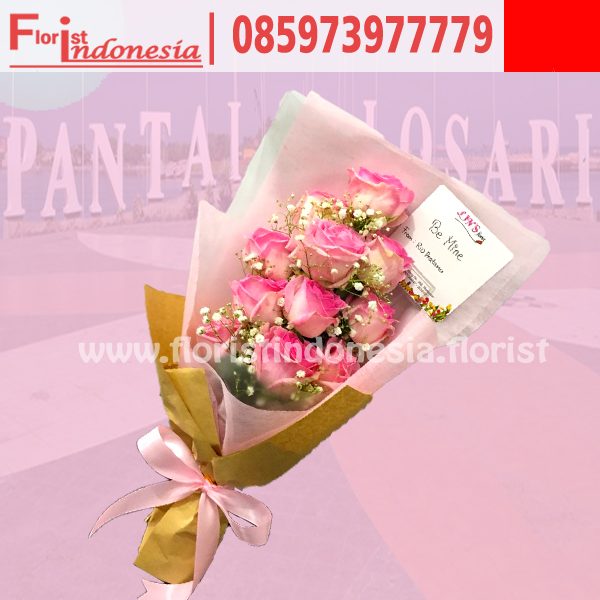 hand bouquet makassar dengan 10 tangkai mawar pink