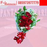 hand bouquet dengan 10 tangkai mawar merah