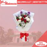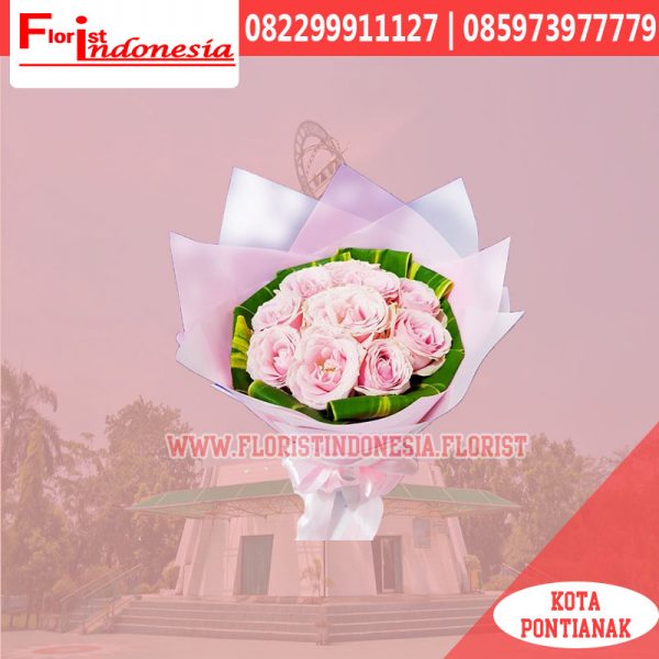 hand bouquet pontianak dengan 10 tangkai bunga mawar pink