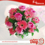 Vas kramik 14 tangkai mawar pink, 14 tangkai mawar putih, 10 tangkai mawar orange, casablanca, pikok dan baby breath