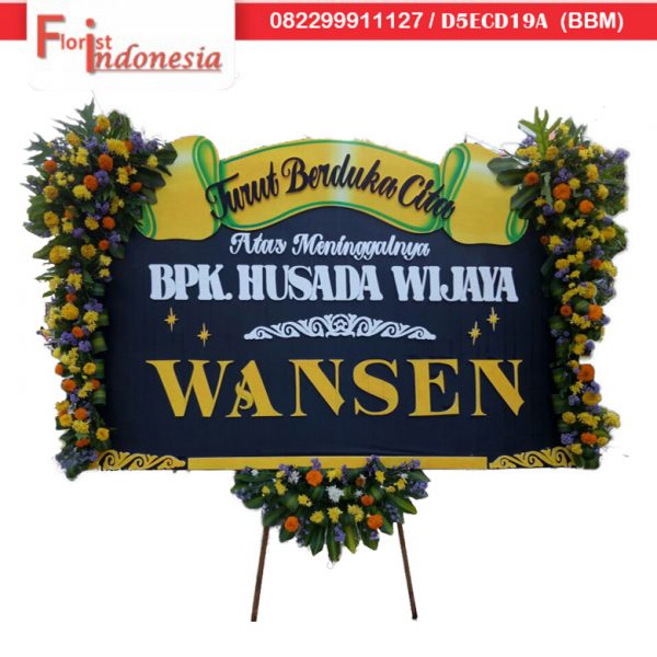 Bunga papan duka cita Sidoarjo ukuran 1,35m x 2m 3 titik panjang